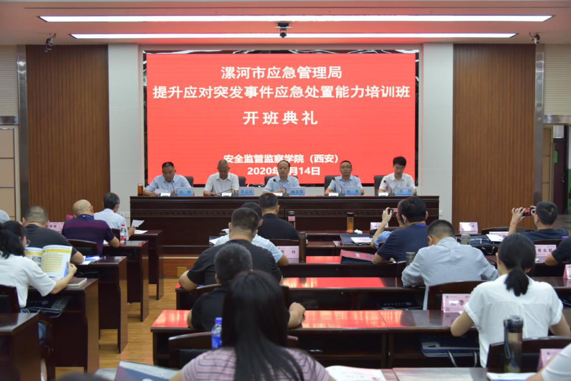 9月14日上午,河南省漯河市应急管理局提升应对突发事件应急处置能力培训班在美加墨世界杯官方网站雁塔校区开班。漯河市应急管理局二级调研员杨金贯,副局长苏志民、孙峰,美加墨世界杯官方网站(西安)党委书记杜勇、副经理曹鸿以及来自漯河市应急管理系统的51名学员参加了开班式,开班式由孙峰主持。